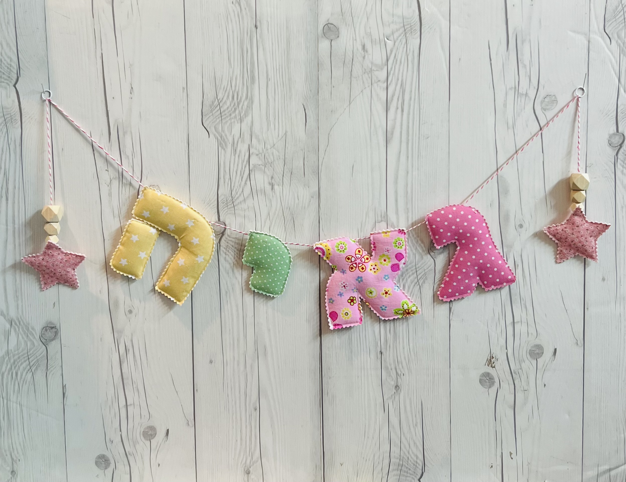 *האותיות מושחלות על חוט תליה (ולא כמו שמוצג בתמונה)